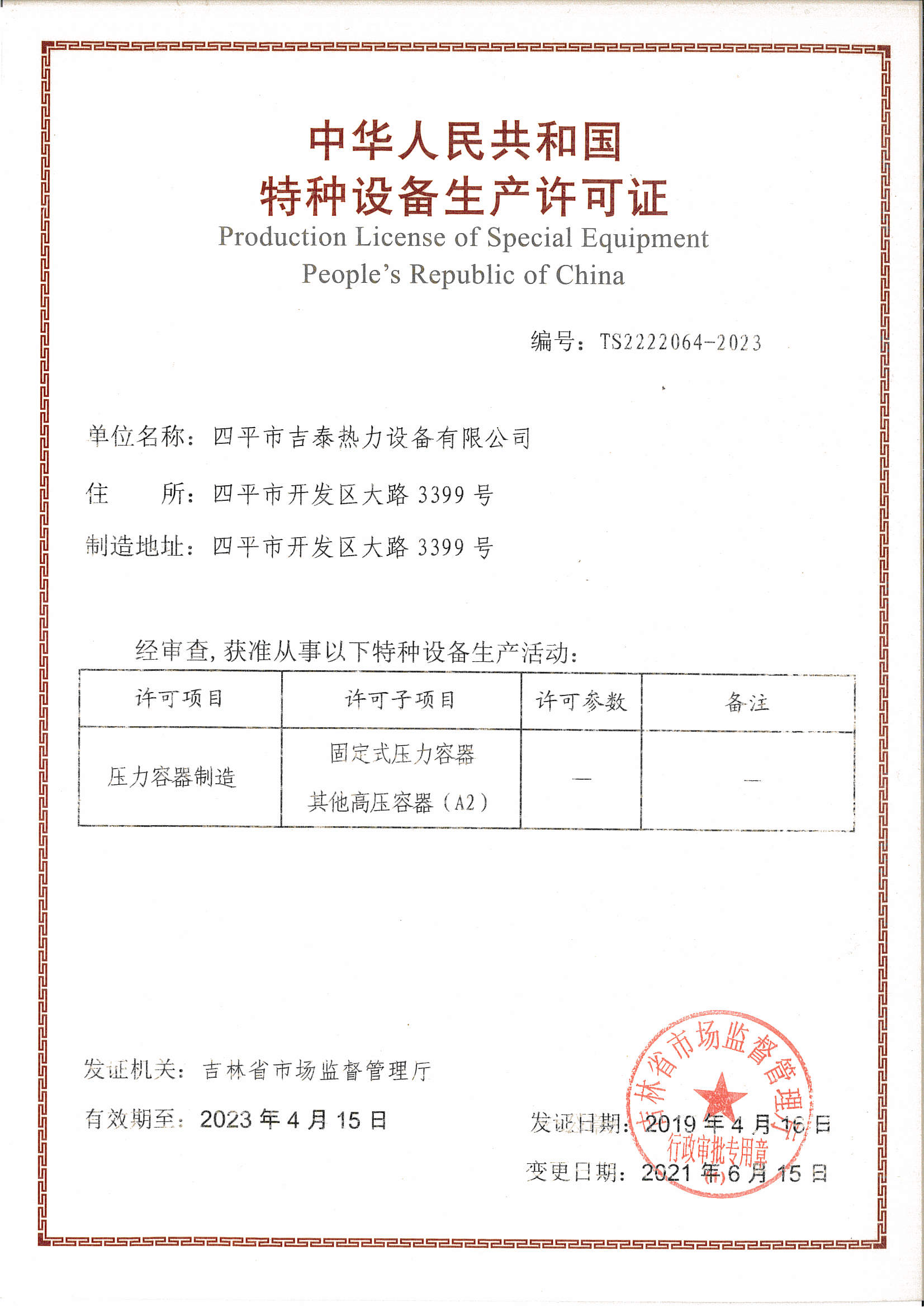 Address:No.3399,Kaifaqu Road,Siping City,Jilin Province